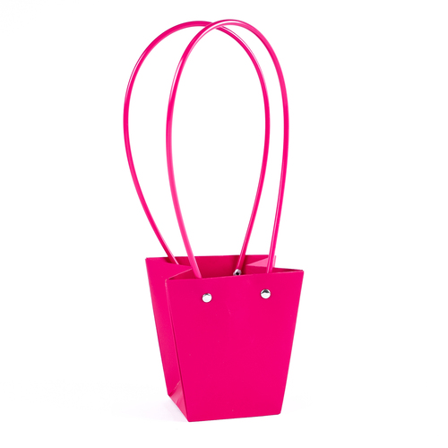 / Пакет под цветы 12*12*8см Конус Фуксия с пластиковой ручкой т.м.10/250