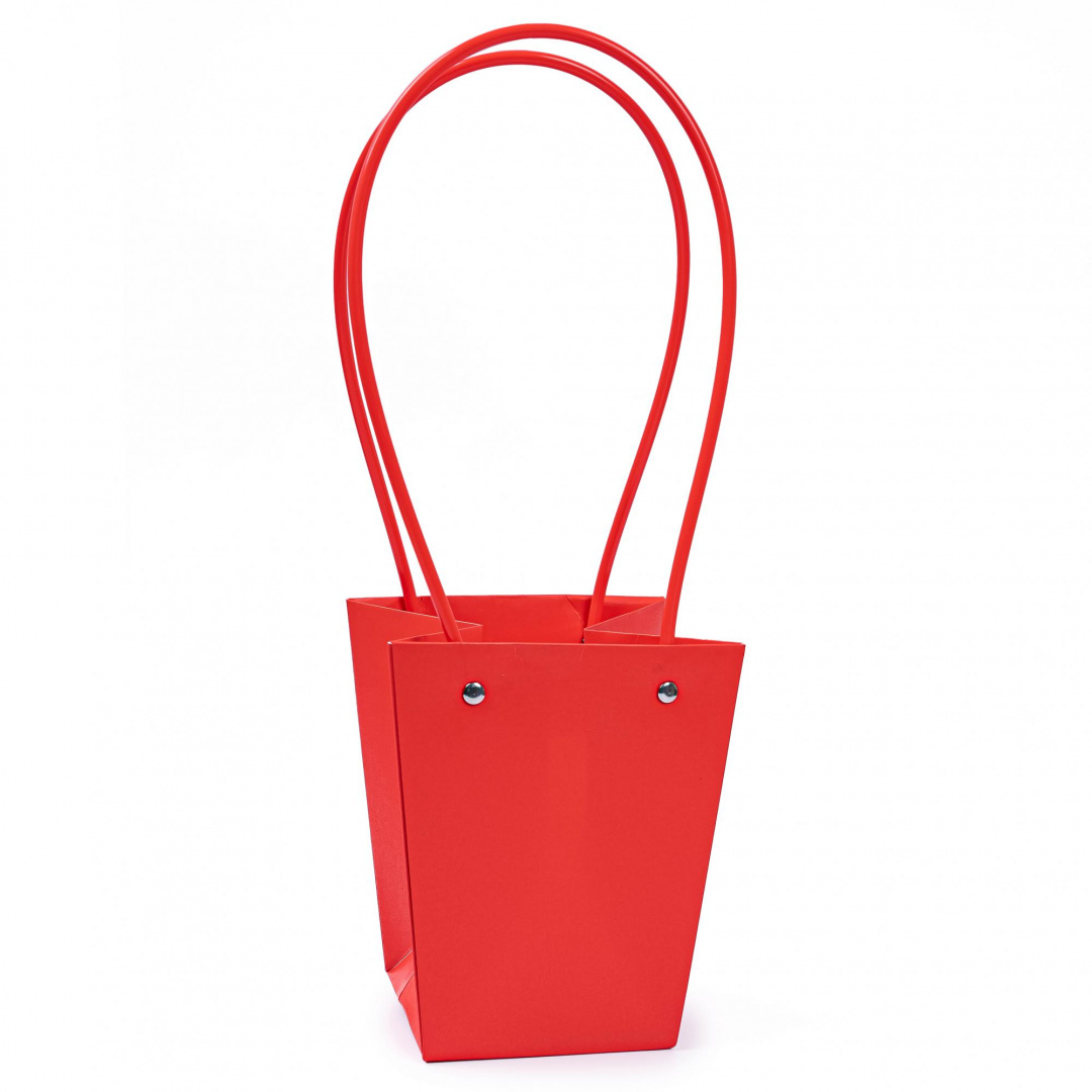 / Пакет под цветы 13*9,5*15,5см Конус Красная с пластиковой ручкой т.м.250