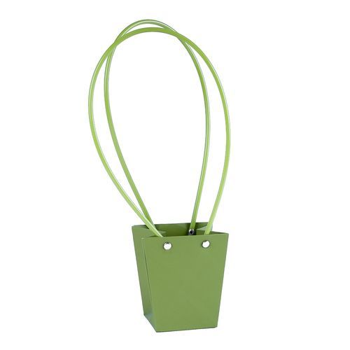 / Пакет под цветы 9*6,5*10см Конус Оливковый с пластиковой ручкой т.м.500