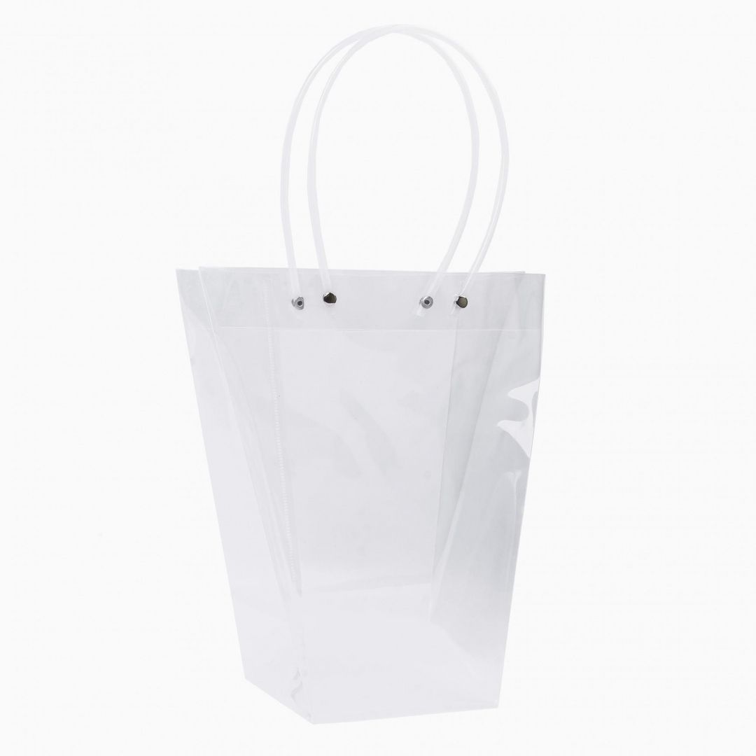 / Пакет под цветы Конус Прозрачный с пластиковой ручкой 23,5*26*11см