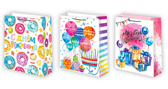 Пакет подарочный 18-23 лам.матовая микс (уп. по 12 шт.) Общая