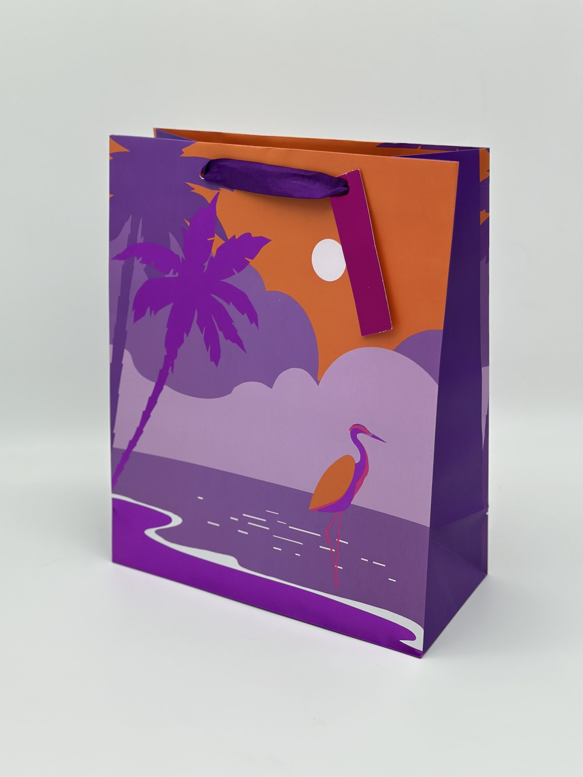 / Пакет подарочный АВ 260*320мм, Цапля пальма ярко-розовый
