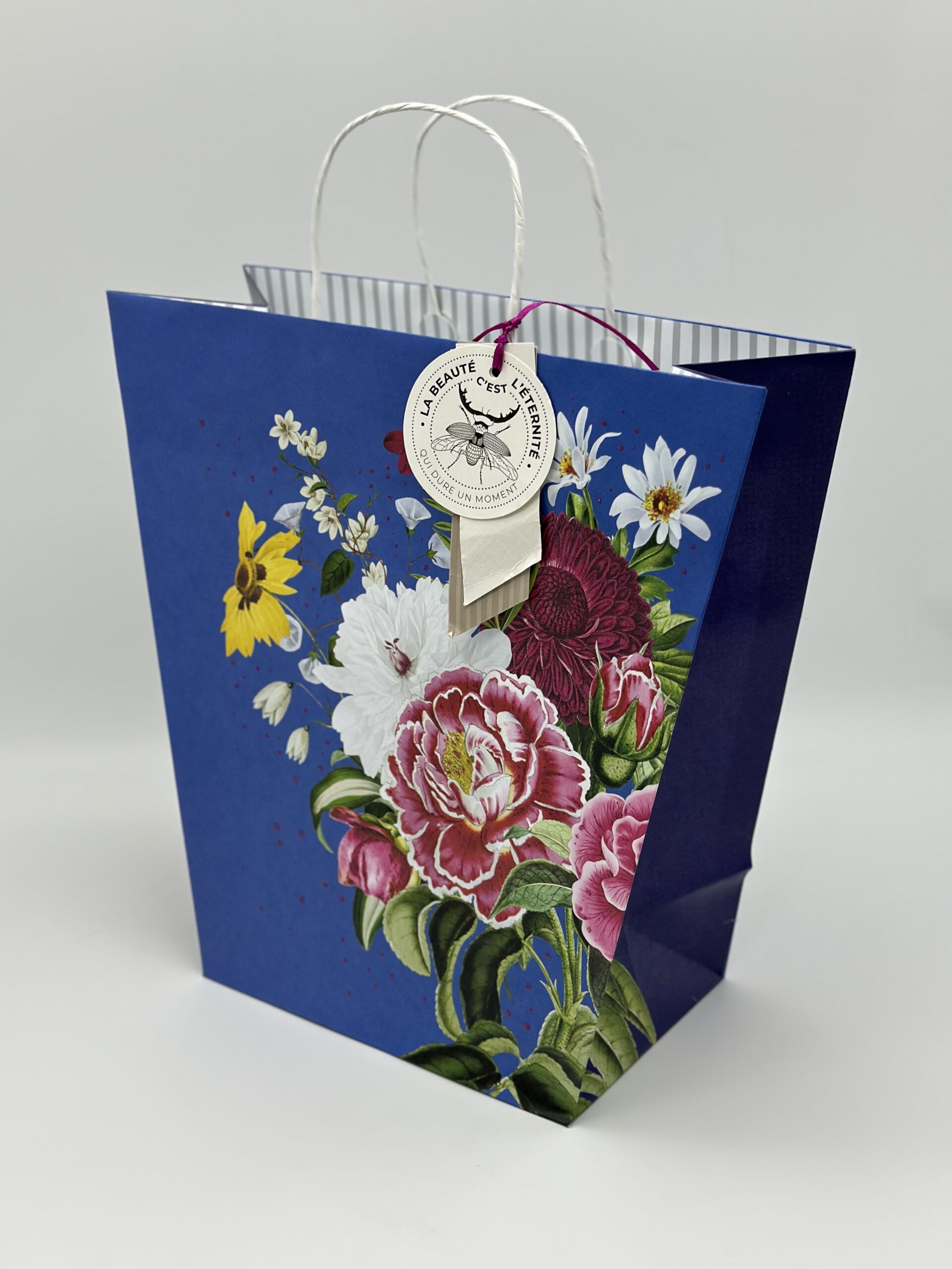 Пакет подарочный ТА 335*328мм. Трапеция. Цветы на синем