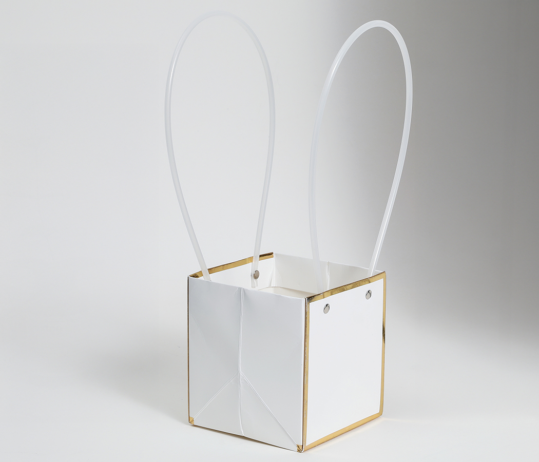 / Пакет подарочный “Мастхэв” , 12,5*11,5*12,5см, 10шт./упак., белый с золотыми линиями