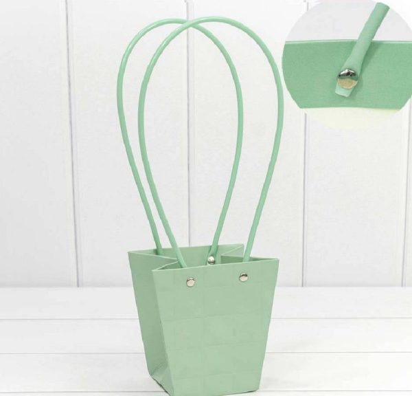 / Пакет подарочный “Ваза для цветов” 12,5*12*8 “Квадраты” Бледно-зелёный 1/10 1/200