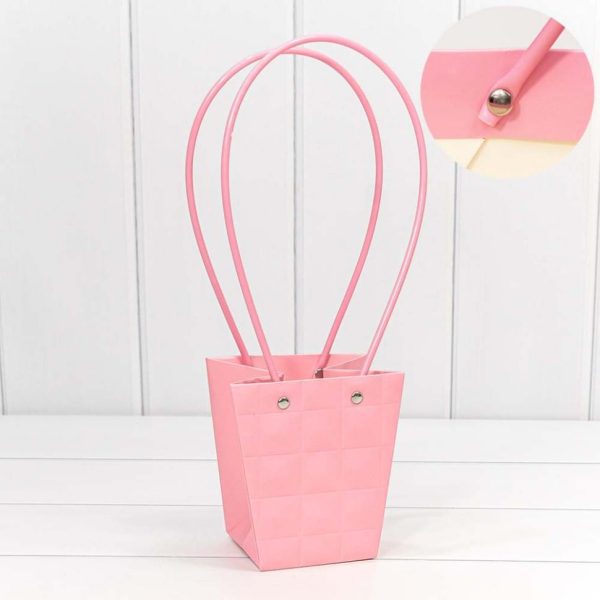 / Пакет подарочный “Ваза для цветов” 12,5*12*8 “Квадраты” Тёмно-розовый 1/10 1/200