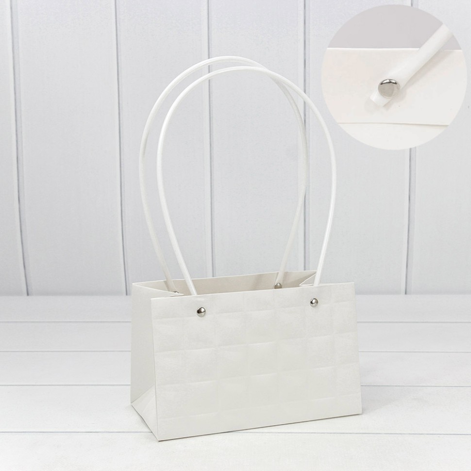 / Пакет подарочный “Ваза для цветов” 19*12*10,5 “Квадраты” Белый 1/10 1/150