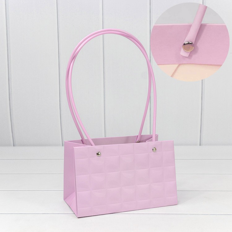 / Пакет подарочный “Ваза для цветов” 19*12*10,5 “Квадраты” Светло-сиреневый 1/10 1/150