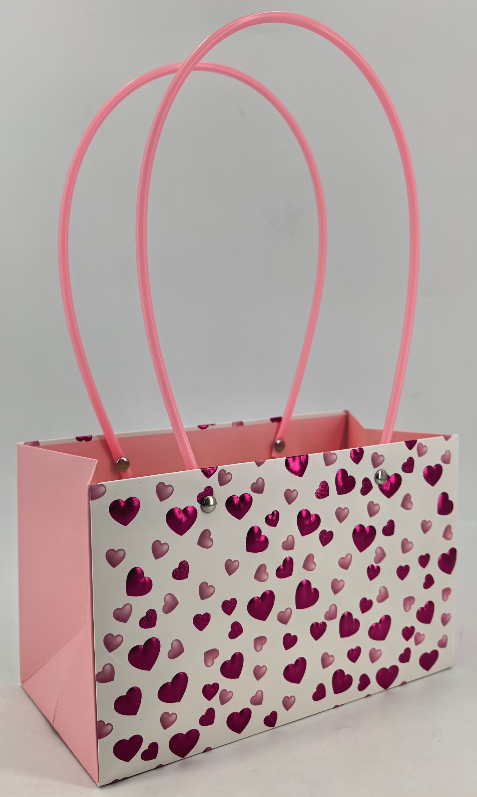 Пакет подарочный c фольгированными сердцами, 22*10.5*13.5 см., 1 ШТ, розовый