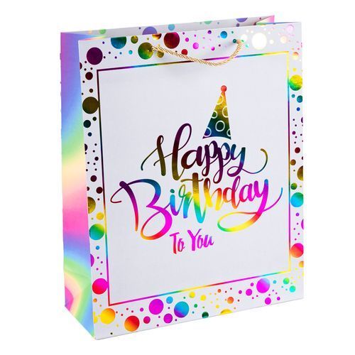 / Пакет подарочный “Happy Birthday Радужный” 26*32*10 см Круги 210гр