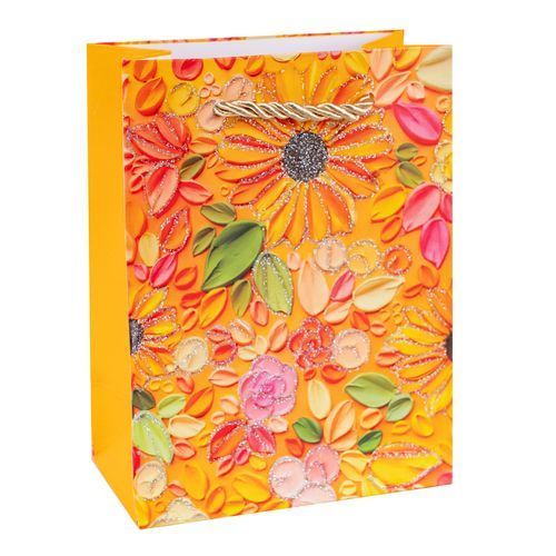 Пакет подарочный “Пластилиновый букет” 12*16*6,5 см Оранжевый 210гр