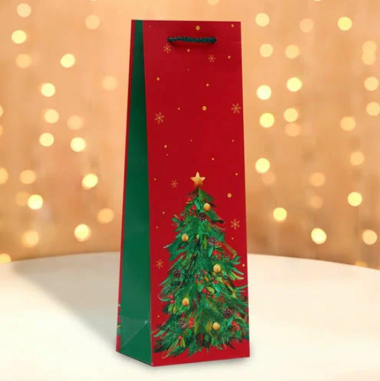 Пакет подарочный новогодний под бутылку, упаковка «Ёлка», 12×36×8.5 см
