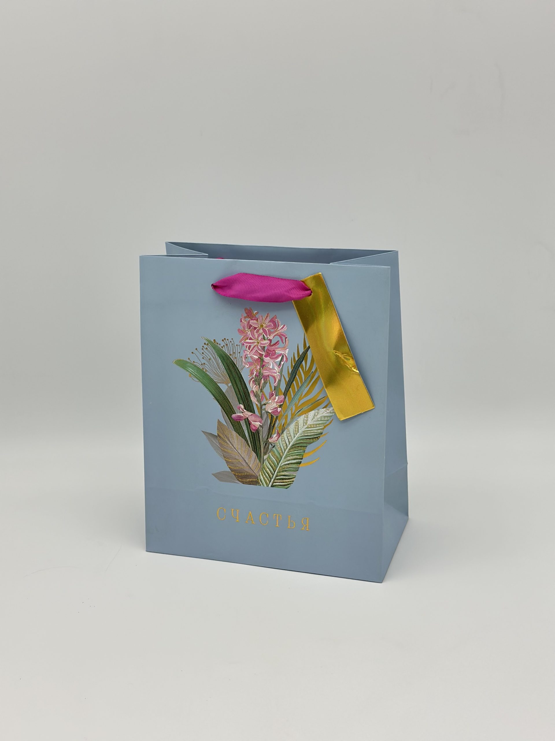 Количество товара Пакет подарочный премиум ВС, 180*223*100мм., Счастья Цветы на голубом