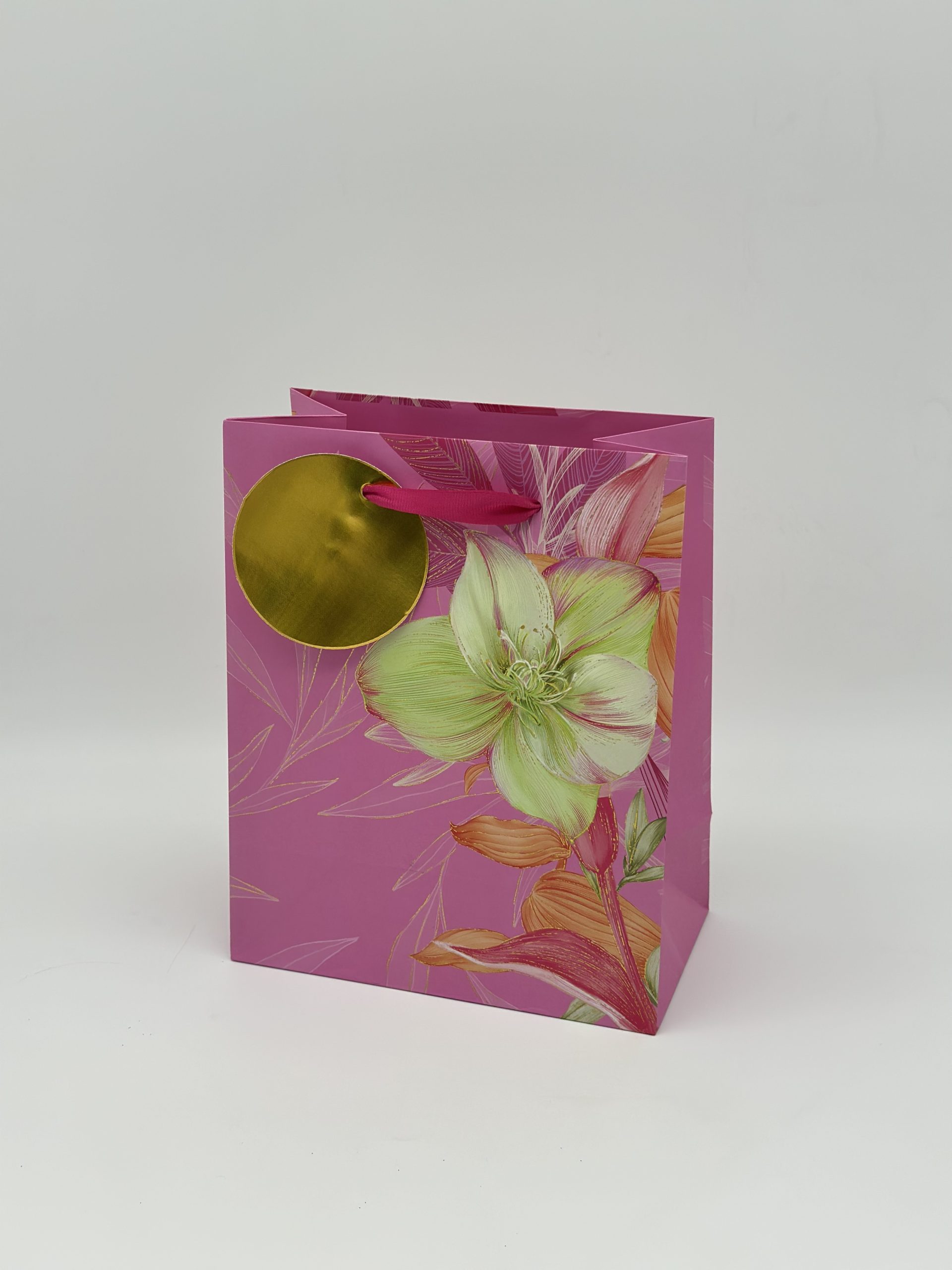 Количество товара Пакет подарочный премиум ВС, 180*223*100мм., Зеленый цветок на розовом
