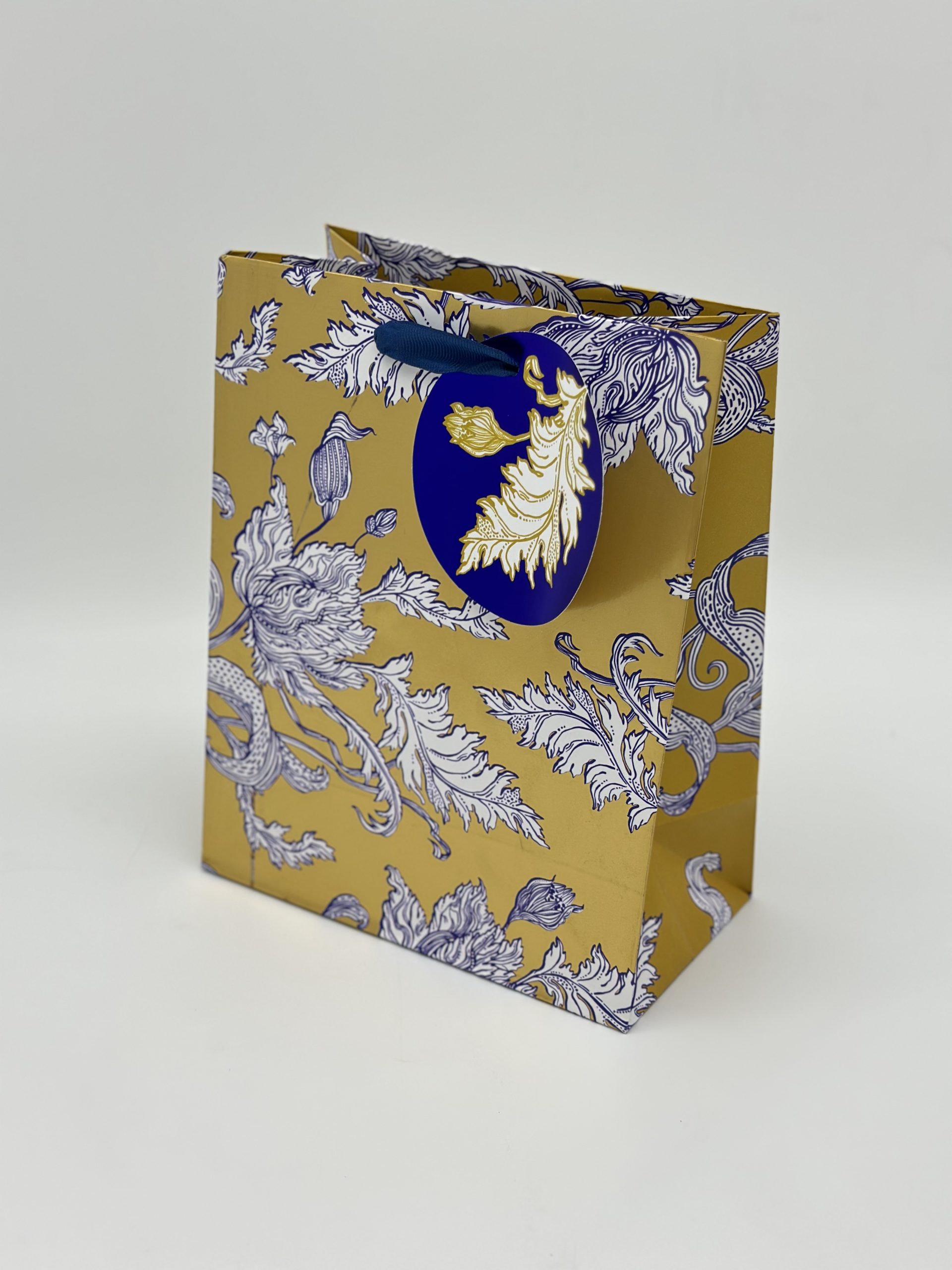 Количество товара Пакет подарочный премиум ВС, 180*223*100мм., Золотой фон синие цветы