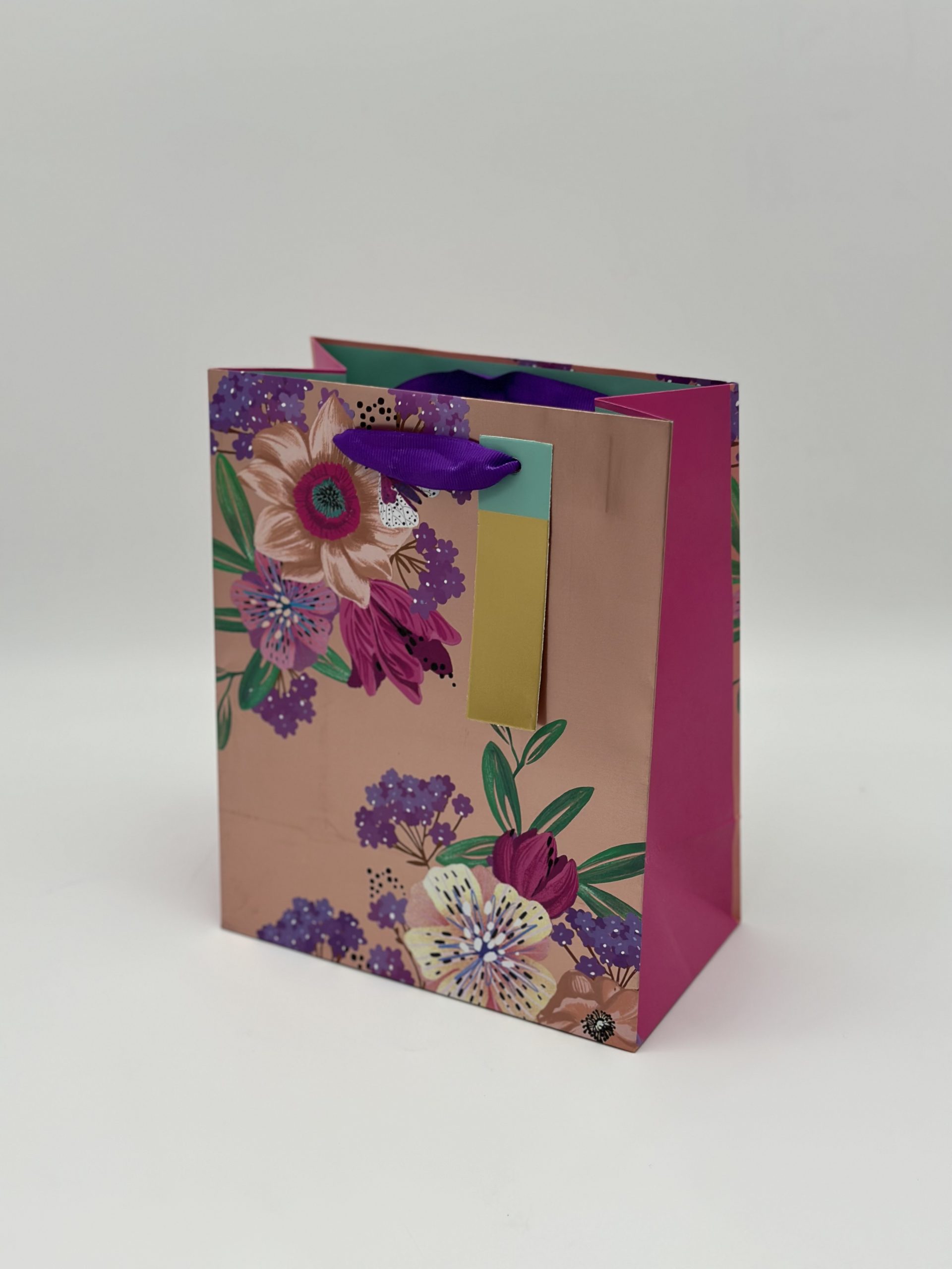 Количество товара Пакет подарочный премиум ВС, 180*223*100мм., Цветы на розовом металле