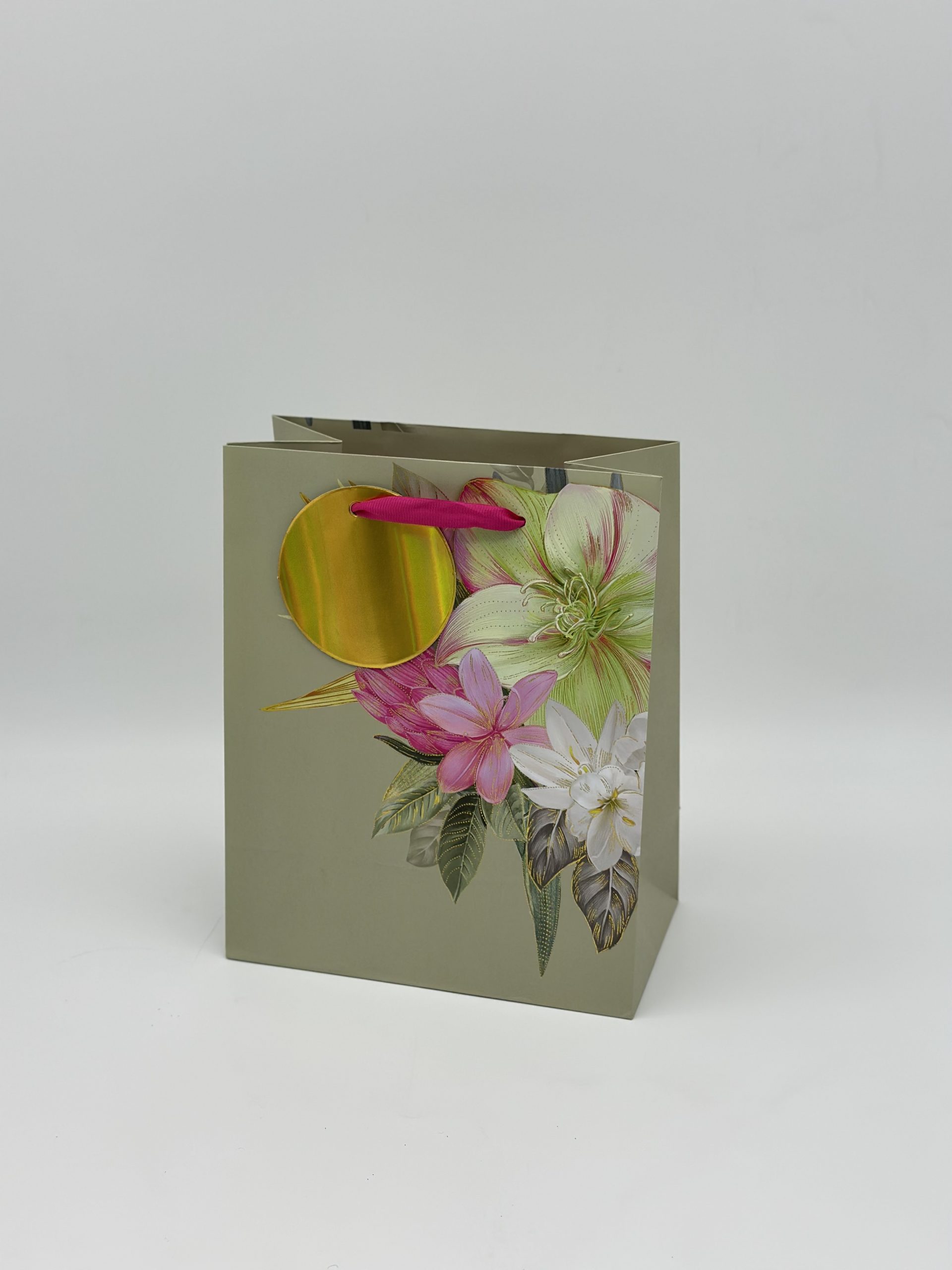 Количество товара Пакет подарочный премиум ВС, 180*223*100мм., Б/Н Цветы на зеленом