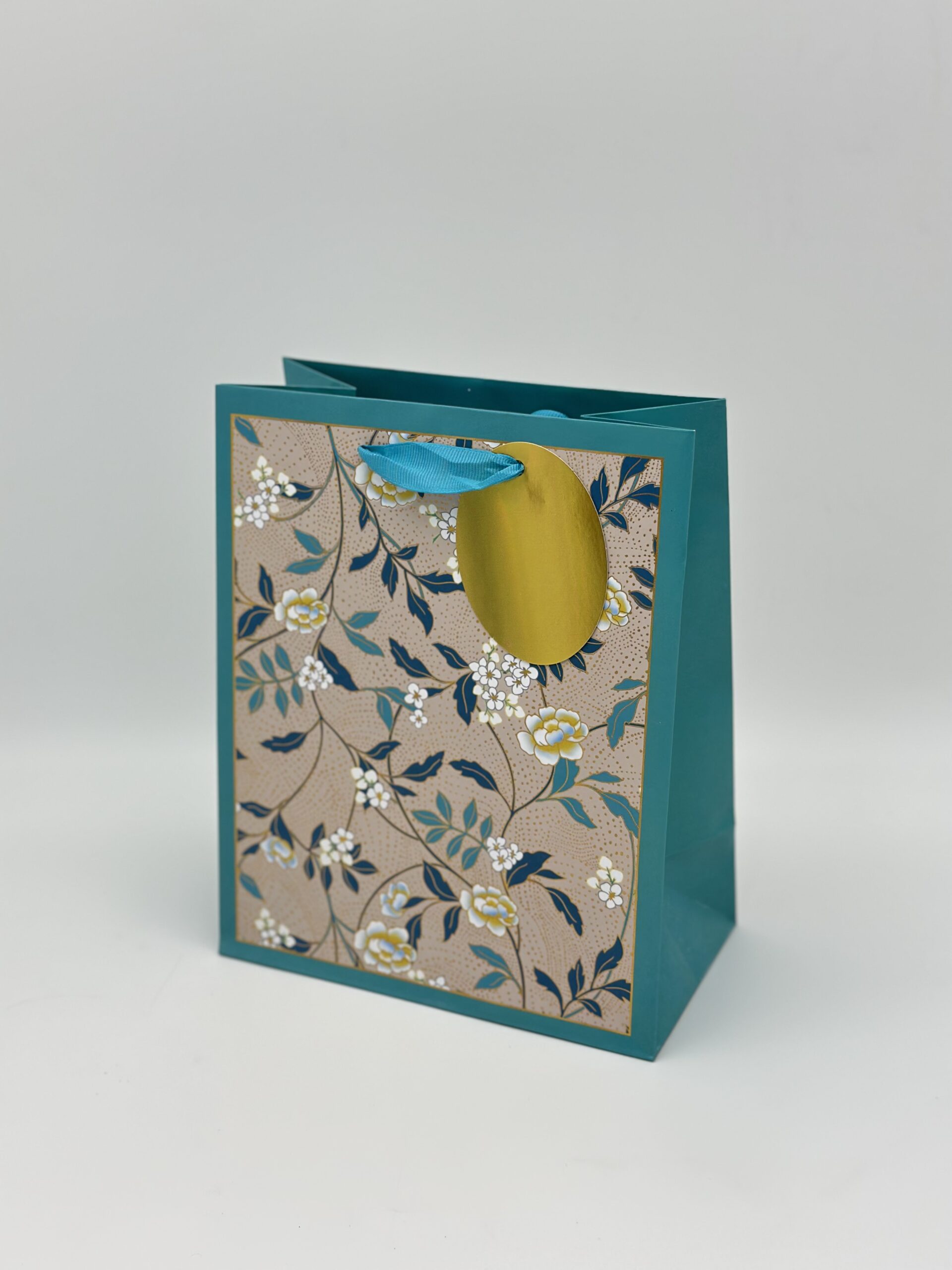 Пакет подарочный премиум ВС, 180*223*100мм., Цветы в бирюзовой рамке