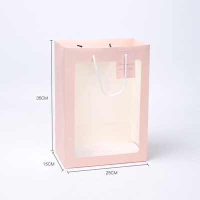 / Пакет подарочный с прозрачным окошком, 25*15*35 см, 1шт, розовый