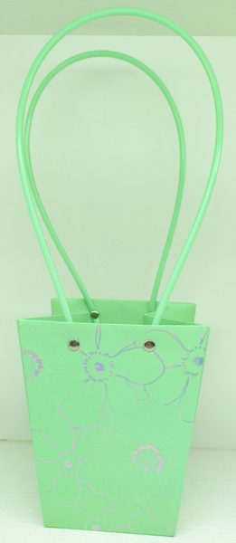 Пакет подарочный тисненый фольгированием 2, (цветок) 13*9.5*15.5 см 1ШТ., пастельно-мятный
