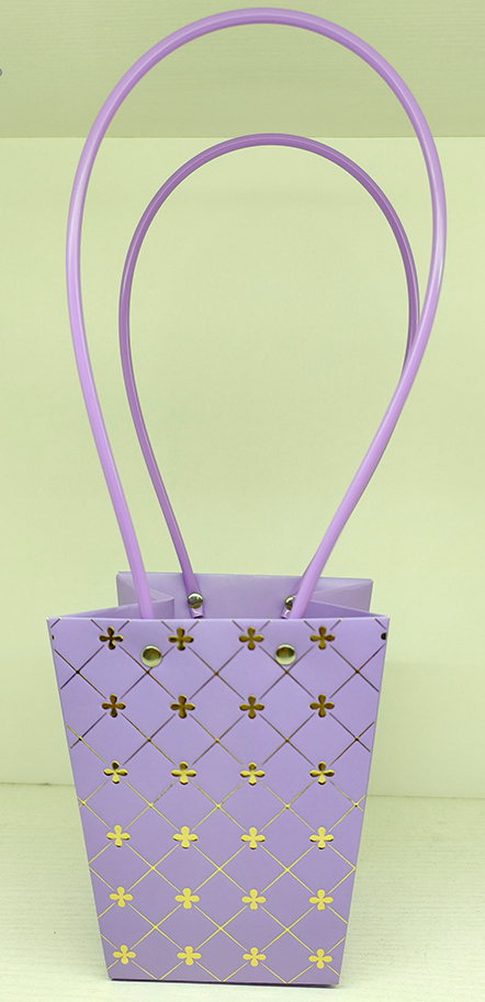 / Пакет подарочный тисненый фольгированием, (треф) 13*9.5*15.5 см 1ШТ., пастельно-лавандовый