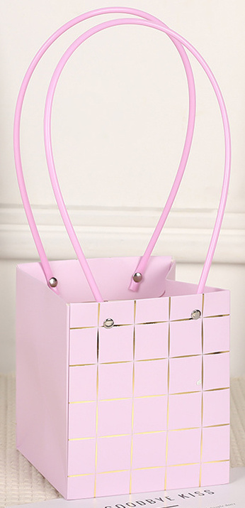 / Пакет подарочный тисненый золотым фольгированием, (квадрат) 13*12.5*15 см 1ШТ., розовый хол.