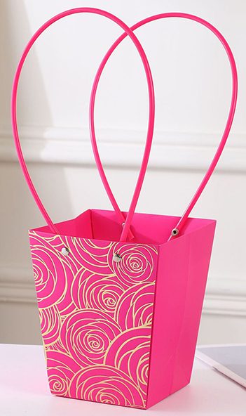 Количество товара Пакет подарочный тисненый золотым фольгированием, (розы) 13*9.5*15.5 см 1ШТ., фуксия