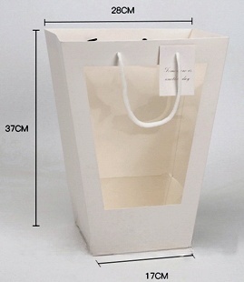 Пакет подарочный трапеция с прозрачным окошком, 17*28*37 см, НАБОР 5 шт, белый