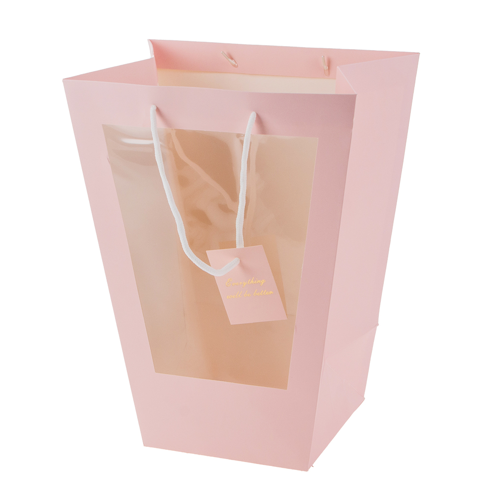 Количество товара Пакет подарочный трапеция с прозрачным окошком, 17*28*37 см, НАБОР 5 шт, розовый