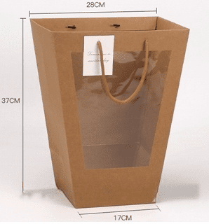 Пакет подарочный трапеция с прозрачным окошком, 17*28*37 см, НАБОР 5шт, крафт