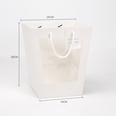 / Пакет подарочный трапеция с прозрачным окошком, 18*25*28 см, НАБОР 5шт, белый