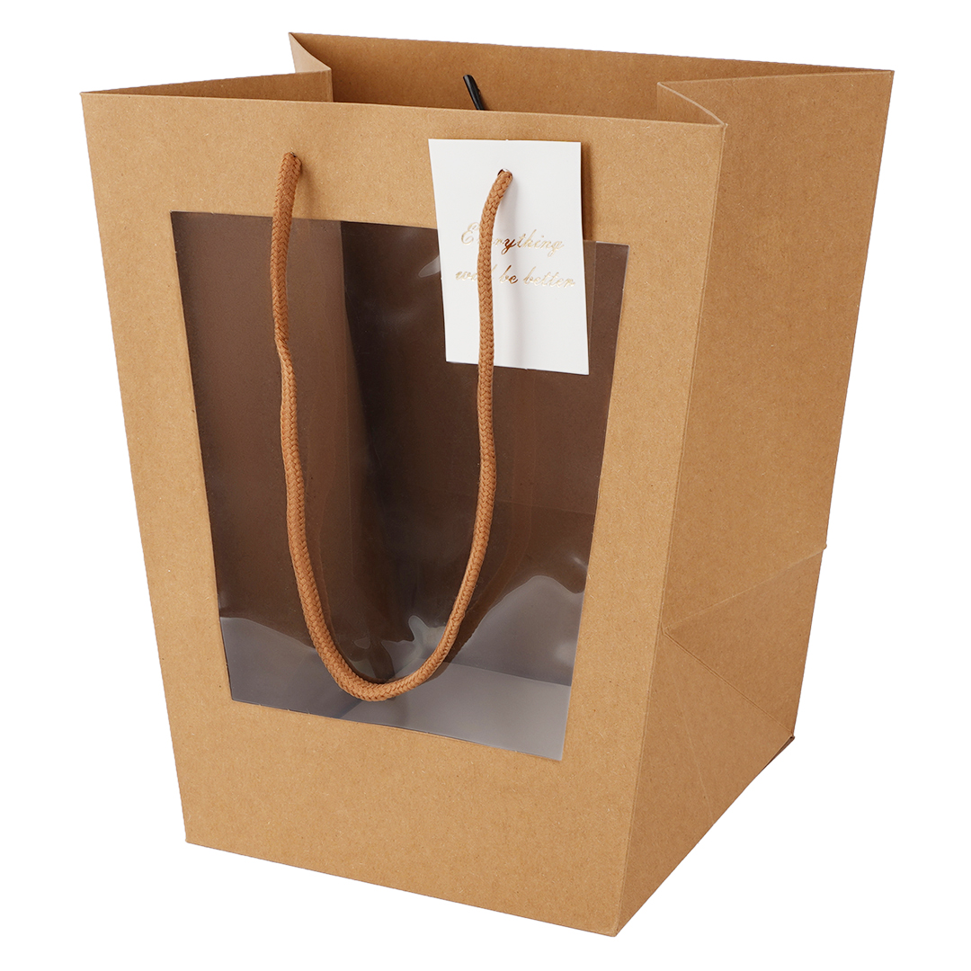 Пакет подарочный трапеция с прозрачным окошком, НАБОР 18*25*28 см, 5шт, крафт