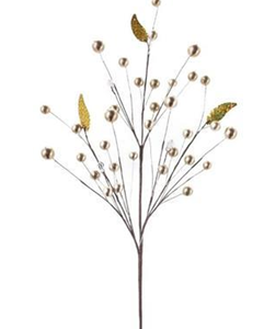 Ветка декоративная с бусинами и листиками, 60 см, 1 шт., золотой