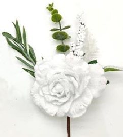 Ветка декоративная с заснеженным цветком, 33 см, белый