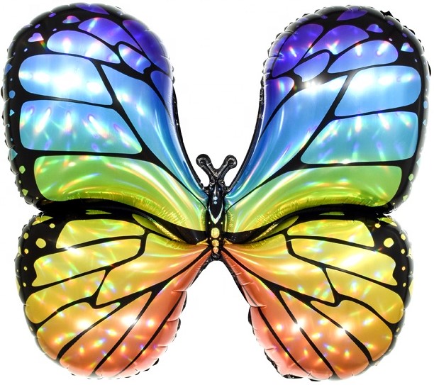 Шар (28”/71 см) Фигура, Бабочка, Яркая радуга, Голография, 1 шт.