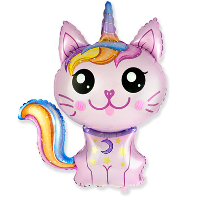 Шар ФИГУРА/35″ Кот-Единорог розовый 70х100 см /FM