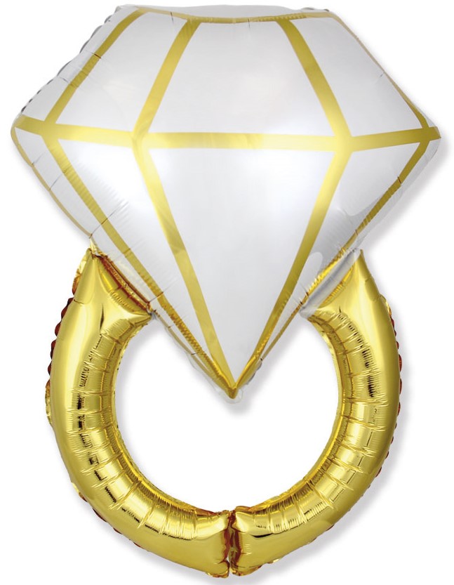 / Шар (36”/91 см) Фигура, Кольцо с бриллиантом, Белый/Золото, 1 шт.