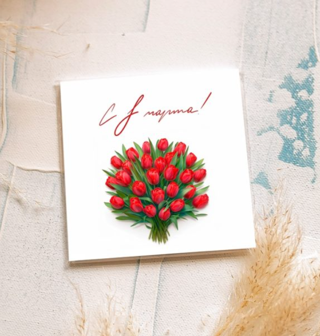 / Карточка “С 8 марта! (букет красных тюльпанов)” K561
