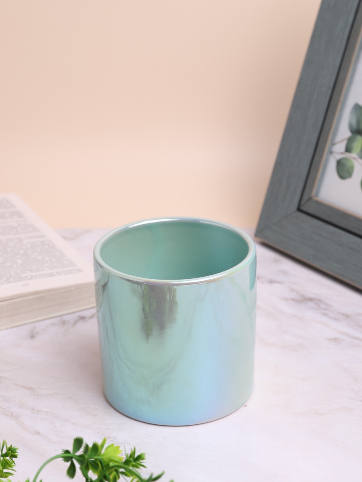 Кашпо керамика 10х10см перламутр голубой