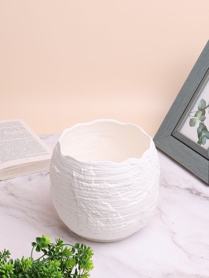 / Кашпо керамика 16,5х15см кленовый лист белый