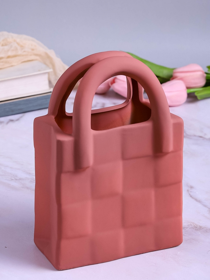 / Кашпо керамика сумка 21х14х8,5см розовый