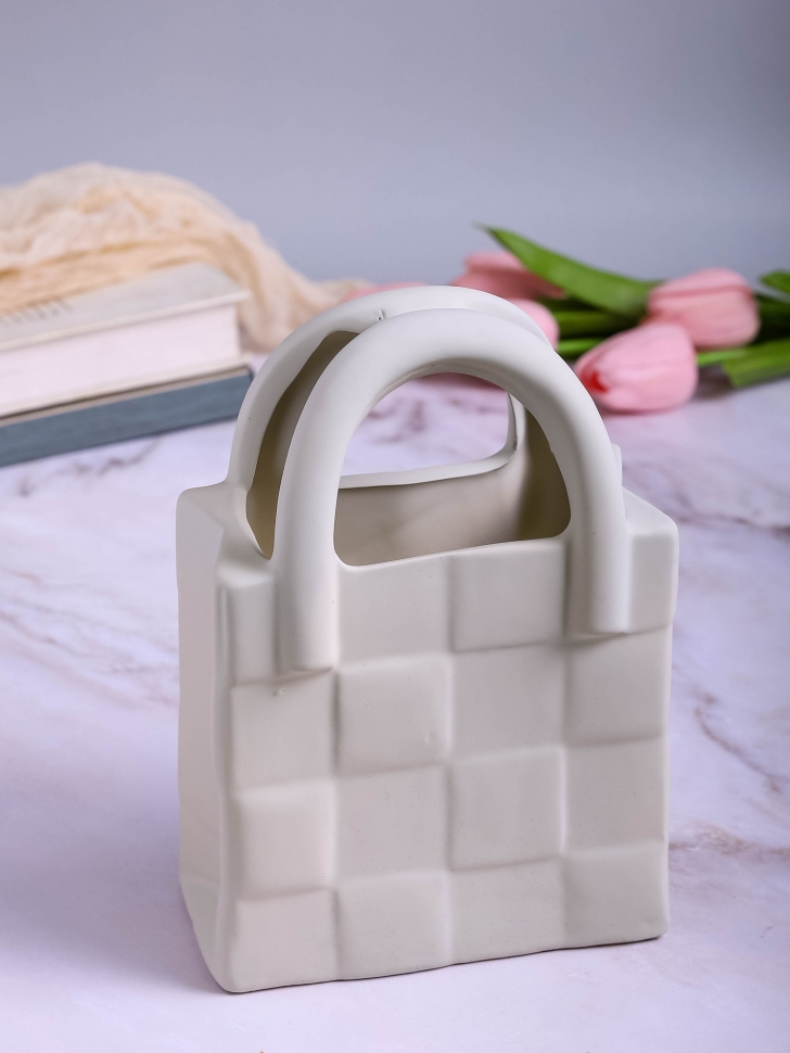 Кашпо керамика сумка 21х14х8,5см светло-серый