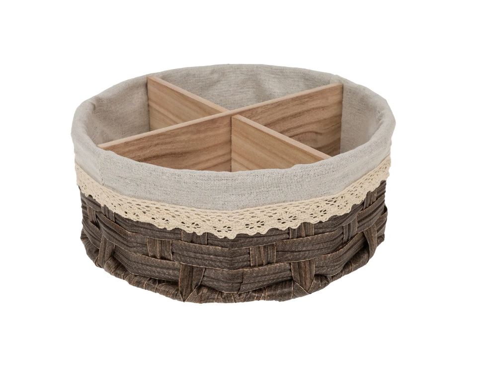 Кашпо плетеное для хранения (пластик), D25хН10 см, (H-10см, D-25см, Бежевый-серый)