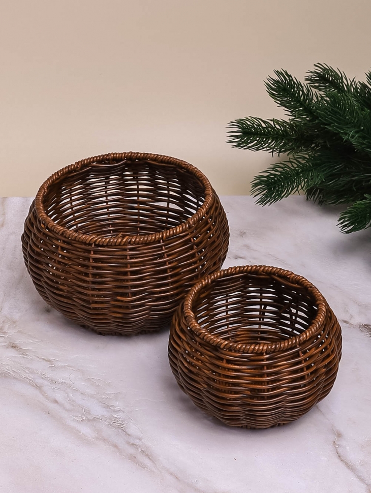 / Кашпо плетеное (пластик) 2шт 15х15х10см коричневый темный