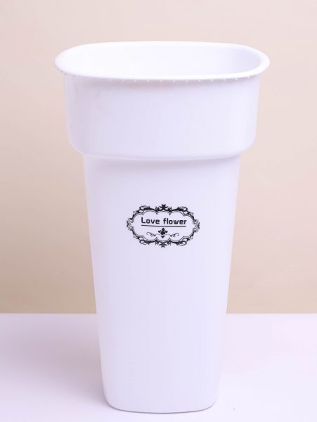 Акриловая ваза для цветов, плоская с пластиковой ручкой, ширина 12,5cm, высота 16cm, цв. Белый