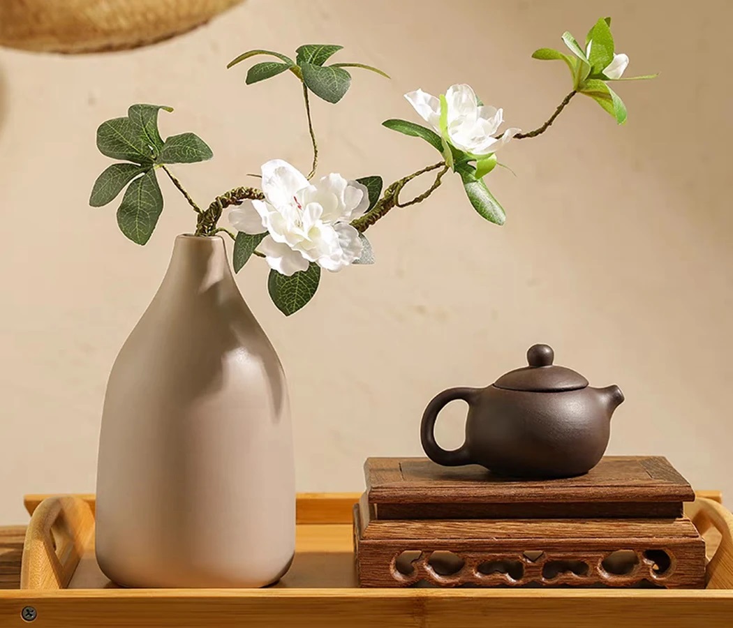Ваза керамическая декоративная 2,5 * 20 * H11, 1 шт., св.бежевый 4776
