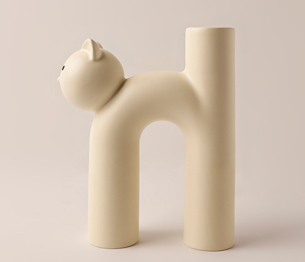 / Ваза керамическая, “Кот”, матовая, цвет молочный, 18*6,5*21 см.