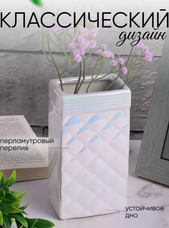 / Ваза керамика 18х10х7,5см 8902C-07 Перламутр белый