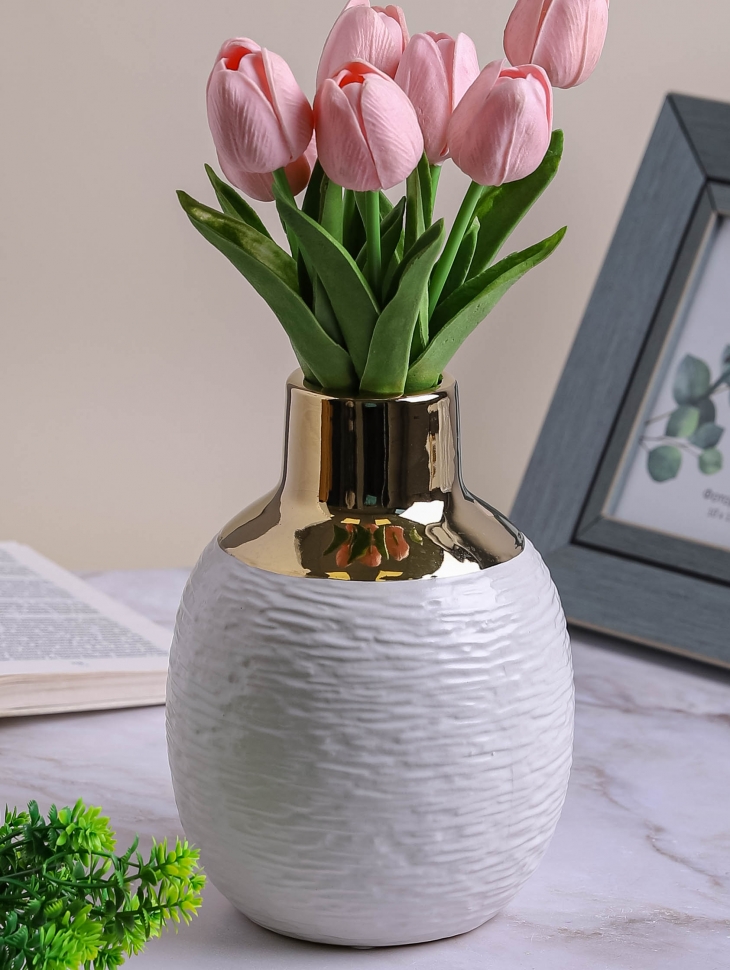 Количество товара Ваза керамика 22х6х5см CN230425-24-66 золотое горлышко белый