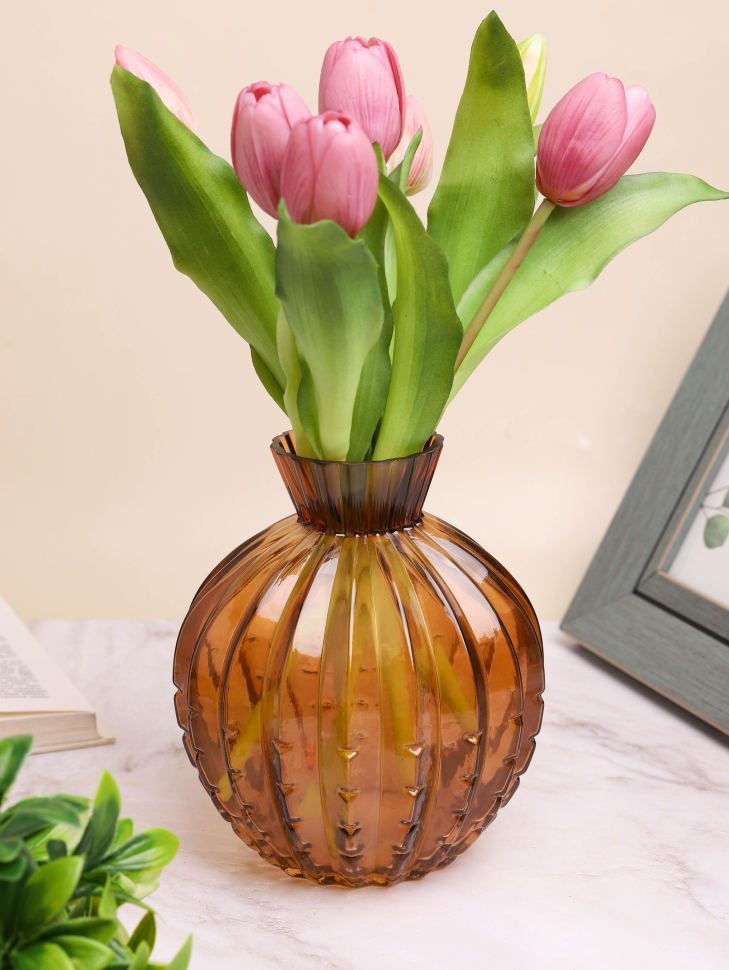 Ваза стекло h17 d14,5х6,5см К 174 янтарный